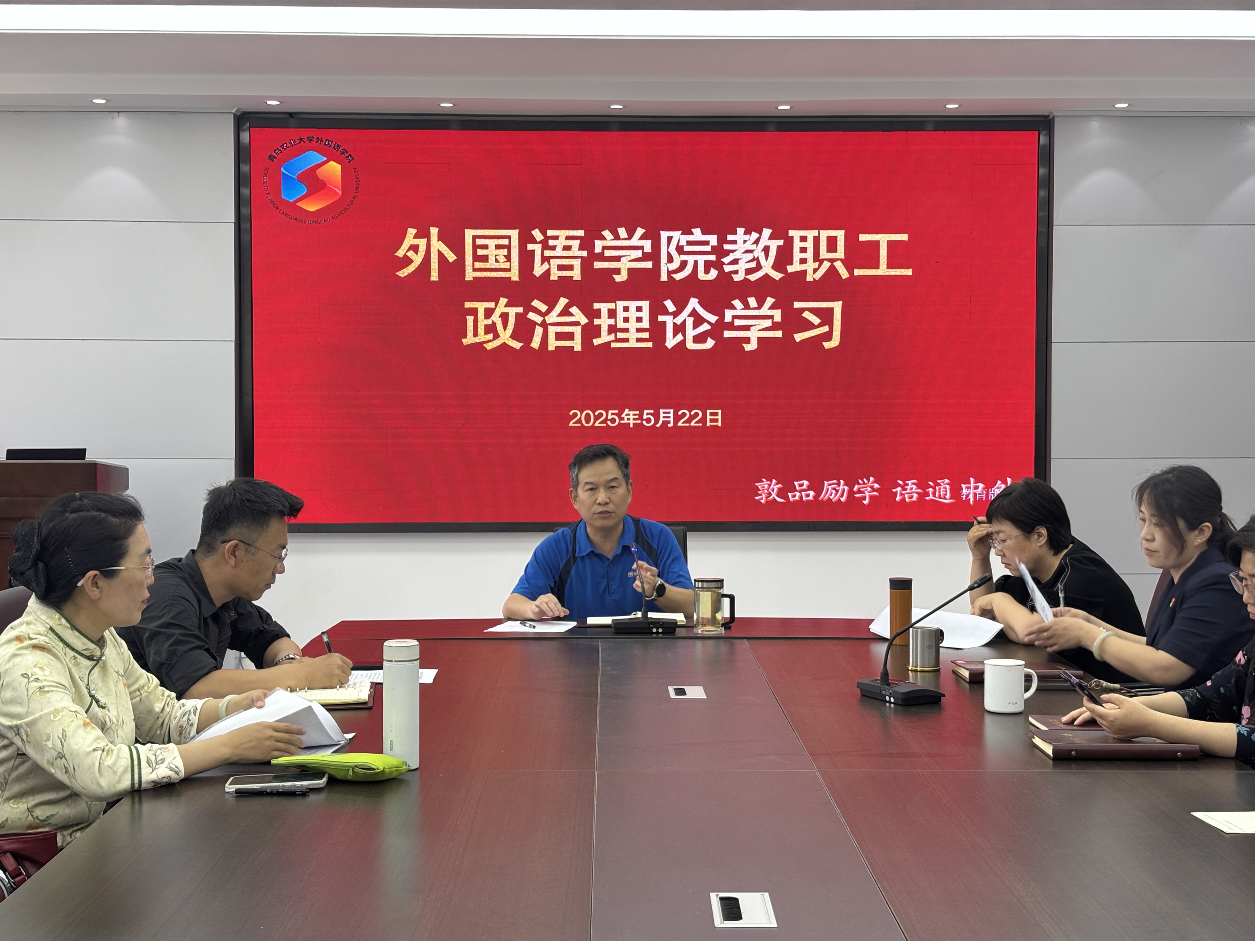 高秀雪以《紧扣国家社会需求,推动外语科研高质量发展》为题讲授专题党课,围绕外语学科建设的时代背景、外语学科肩负的时代任务、外语学科高质量发展探索、外语科研的一些思考四个方面进行深入浅出的讲解。