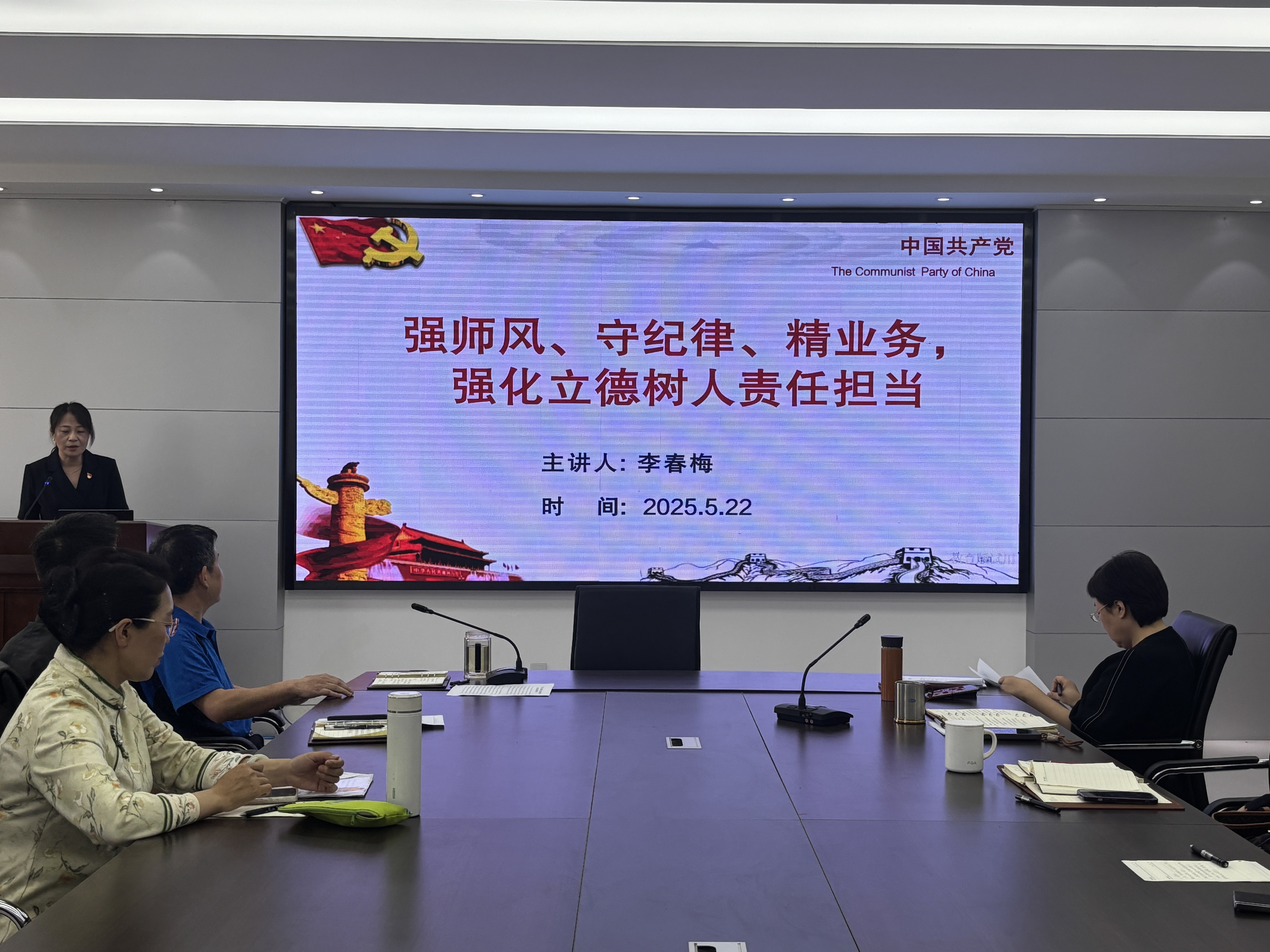 5月22日,太阳集团tyc234cc在文经楼C220会议室开展作风建设专题理论学习,太阳集团tyc234cc党委书记王效仿主持,太阳集团tyc234cc副院长李春梅、副院长高秀雪讲授专题党课,全体教职工参加学习。