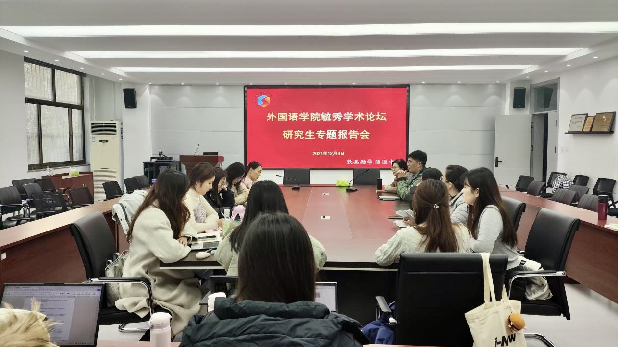 12月4日下午,太阳集团tyc234cc在文经楼C220会议室举办毓秀学术论坛研究生专题报告会。会议由MTI教育中心主任姚雪丽主持,学院研究生导师参会并点评指导,2023级、2024级研究生与会学习。