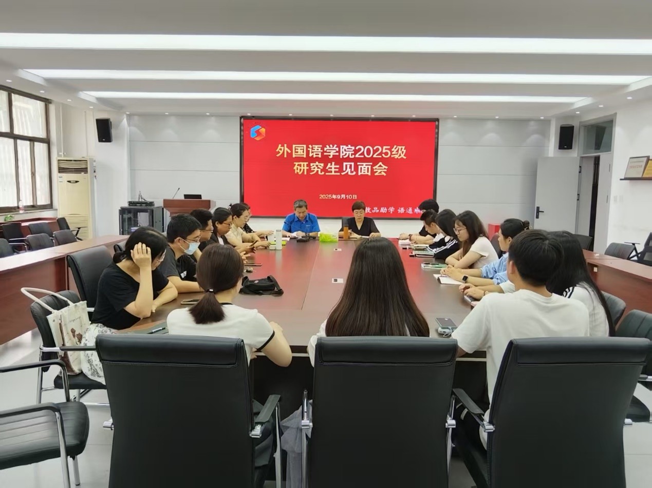 9月10日,太阳集团tyc234cc于C220会议室举行2025级研究生新生见面会。太阳集团tyc234cc党委书记王效仿、院长纪卫宁、副院长高秀雪、英语系系主任徐玉凤、大学英语第一教学部主任王珍、2025级研究生导师、研究生辅导员及2025级研究生新生参加。会议由学院科研副院长高秀雪主持。