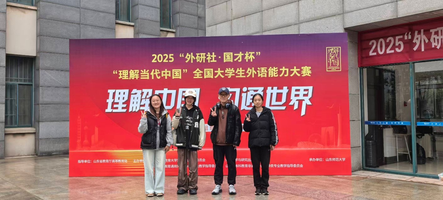 10月25日,2025“外研社·国才杯”“理解当代中国”全国大学生外语能力大赛山东省省赛英语组综合能力赛项在山东师范大学长清湖校区举办,来自全省各大高校的300多名选手参加了本次大赛,太阳集团tyc234cc代表团队在指导老师王琳的带领下取得了优异的成绩,太阳集团tyc234cc林芝旭同学荣获金奖,将继续代表学校角逐国赛,魏瑞昕和蔚思涵同学双双荣获银奖,许一鸣同学荣获优胜奖。