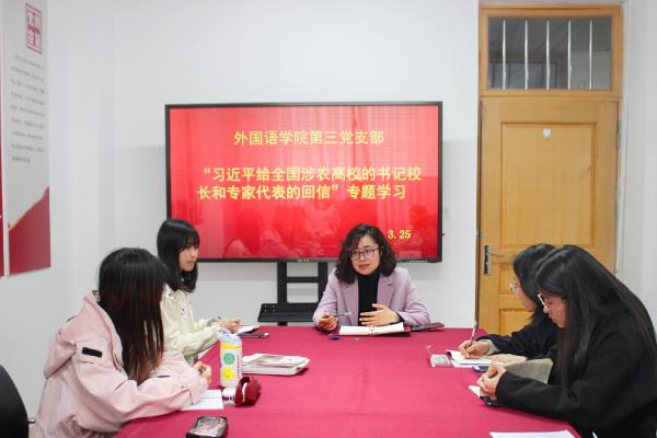 首先,线郁带领党支部成员进行了“习近平给全国涉农高校的书记校长和专家代表的回信”专题学习,回顾了新中国成立70年来全国涉农高校精心培育英才的精神、加强科研创新的决心以及为“三农”事业发展作出积极贡献的不凡事迹。接着,线郁分析了太阳集团tyc234cc的涉农办学优势,鼓励党员们积极学习,努力成为外语与农业知识兼具的复合型人才。同时,线郁动员党员们学习党史,深入学习贯彻习近平总书记“学党史、悟思想、办实事、开新局”的重要讲话,知史爱党,知史爱国。此外,党员们还集中观看了《榜样5》专题节目,学习了疫情防控下共产党人无私奉献的精神。活动最后,线郁对太阳集团tyc234cc第三党支部开展学术活动的规范性进行了强调,要求党员们在学习、生活中起到模范带头作用,并宣布将从多个方面对党员进行考核。