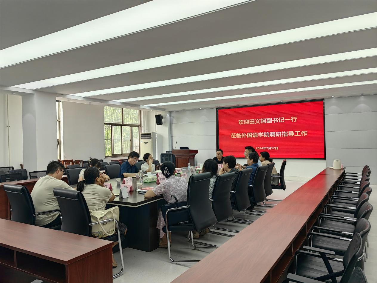 7月12日,校党委副书记田义轲到太阳集团tyc234cc走访调研,指导人才培养工作。学院党委书记王效仿、院长纪卫宁、党委副书记副院长盛金玉等全体党政领导班子成员及各专业负责人参会。