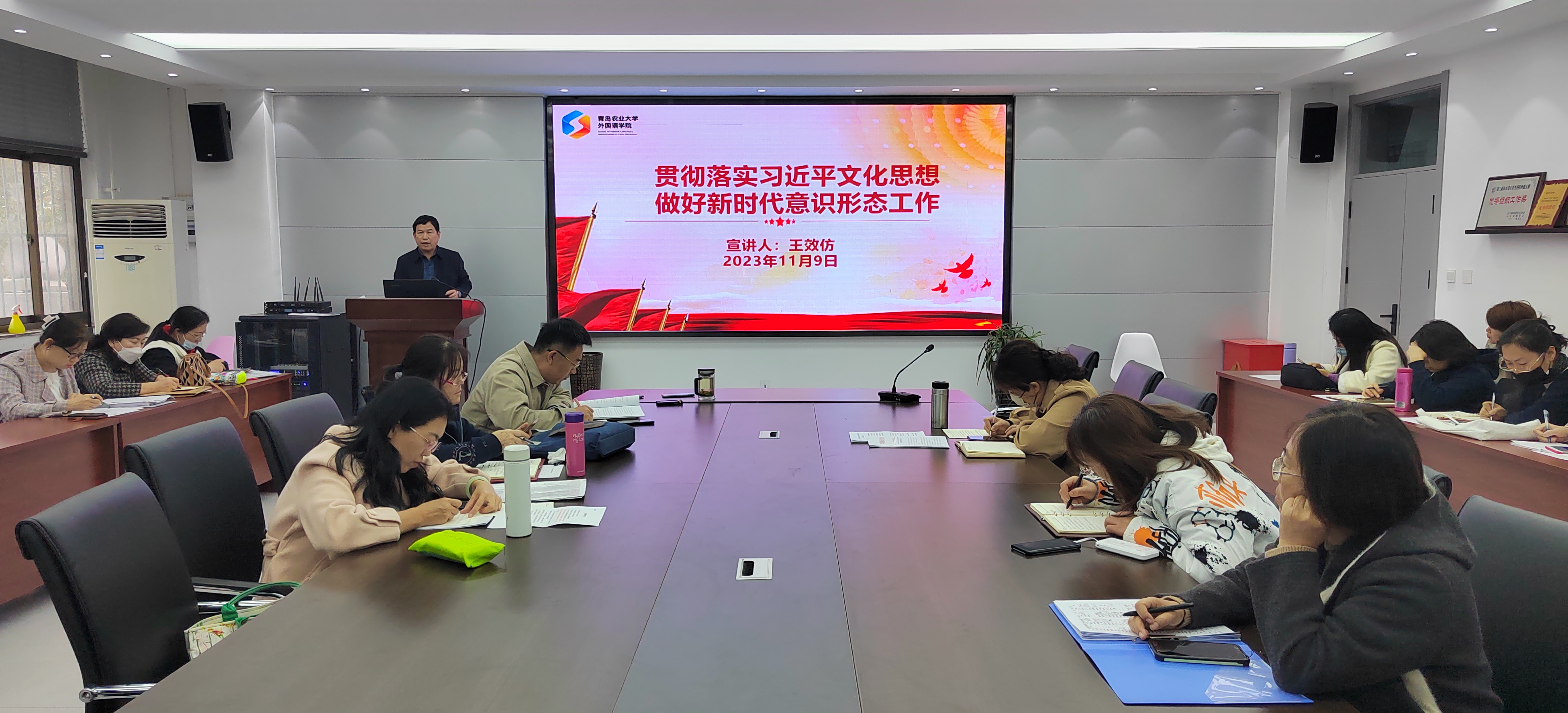 王效仿领学了2023年全国宣传思想文化工作会议精神,并以《贯彻落实习近平文化思想 做好新时代意识形态工作》为主题进行宣讲。报告主要分三个部分,一是强调全体教师要充分认识意识形态工作的极端重要性,从意识形态的学理性内涵、历史上的深刻教训等方面,强调意识形态工作要把围绕中心、服务大局作为基本职责,胸怀大局、把握大势、着眼大事,找准工作切入点和着力点,做到因势而谋、应势而动、顺势而为。二是强调要正视意识形态领域面临的风险挑战,列举了17个意识形态方面现存的问题。三是强调要履职尽责做好新时代意识形态工作,学习传达了《太阳集团tyc234cc意识形态管理制度汇编》精神,明确了太阳集团tyc234cc意识形态工作基本思路,并提出五点具体工作要求。一是要提高政治站位,充分认识意识形态工作的极端重要性;二是要加强理论武装及政策学习,全面提升做好新时代意识形态工作的能力;三是要坚持党管意识形态原则,在“强责任”上下功夫,健全意识形态工作管理体系;四是要建好阵地、管好阵地、用好阵地,在“抓重点”上下功夫,让党的主张成为时代最强音;五是要加强师德建设,增强组织纪律观念,防止出现失德违纪问题引起舆情风险。