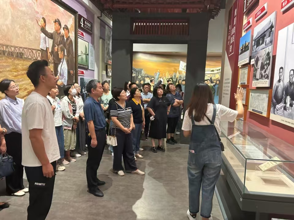 在故居内,全体党员仔细聆听讲解,认真观看展品,深入了解了刘谦初先生波澜壮阔的革命生涯和坚定不移的信仰追求。他那不屈不挠、勇于斗争的革命精神,以及为党和人民事业无私奉献的高尚品质,深深打动了在场的每一位师生。