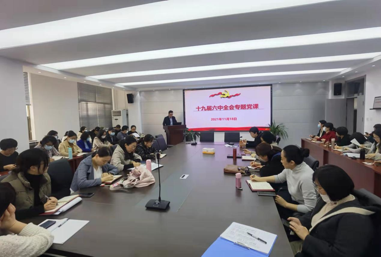 11月18日下午,太阳集团tyc234cc于文经楼C220召开学习党的十九届六中全会精神专题党课,以党课的形式学习了《中共中央关于党的百年奋斗重大成就和历史经验的决议》。全体教职工参与学习,学院党委书记焦磊担任主讲人。