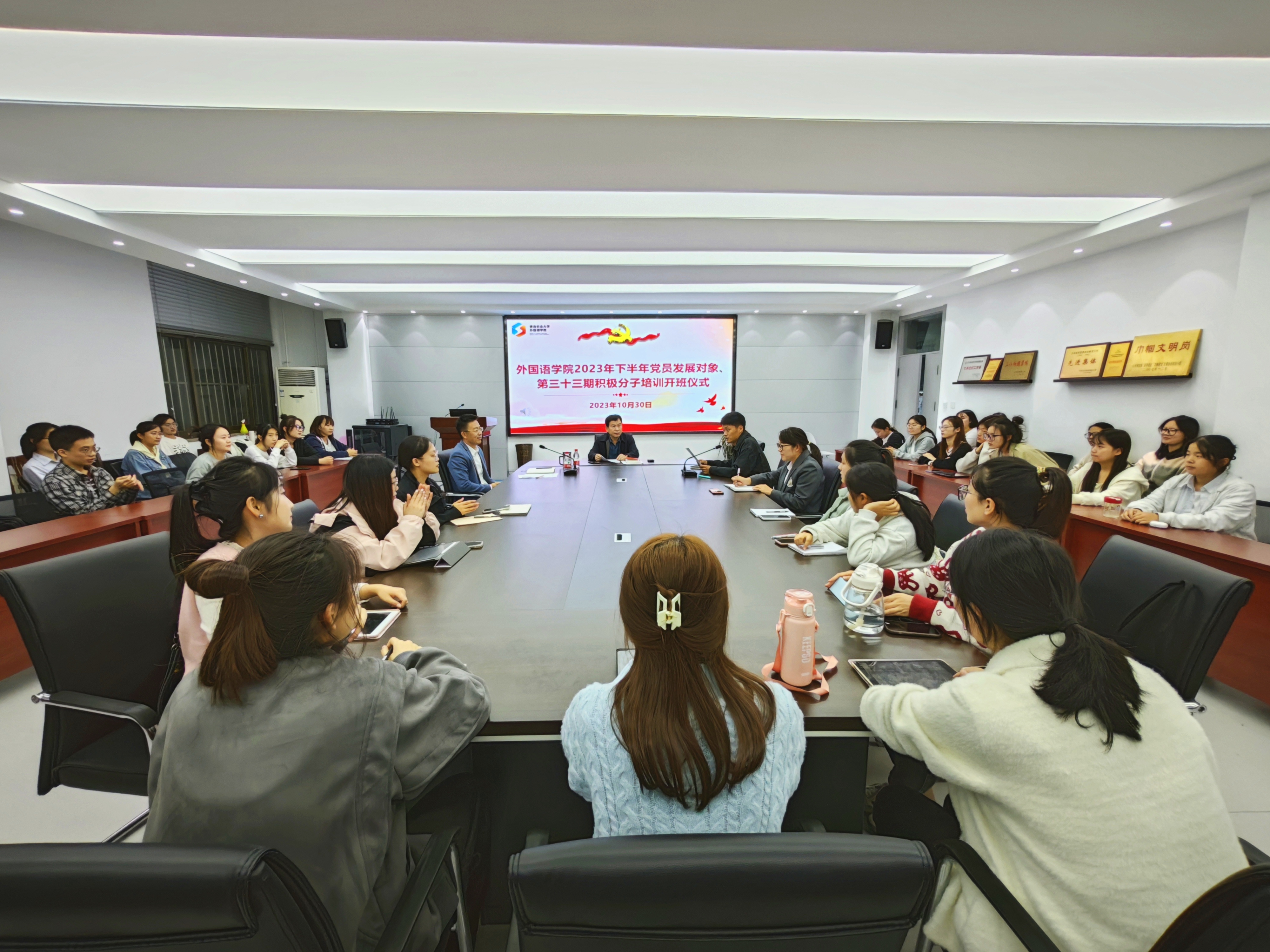 太阳集团tyc234cc于10月30日在文经楼C220会议室举行2023年下半年党员发展对象和第三十三期入党积极分子培训班开班仪式。太阳集团tyc234cc党委书记王效仿,党委副书记、副院长盛金玉,辅导张玉灵参加,辅导员王洋洋主持开班仪式。