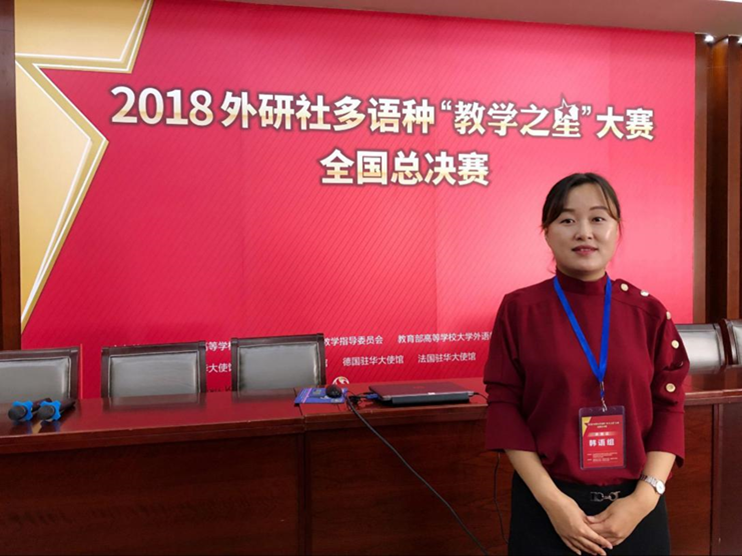12月9日,2018年外研社多语种“教学之星”大赛全国总决赛在北京落下帷幕,太阳集团tyc234cc教师李红兰荣获韩语组一等奖,再次刷新了学院在该奖项获奖的纪录。