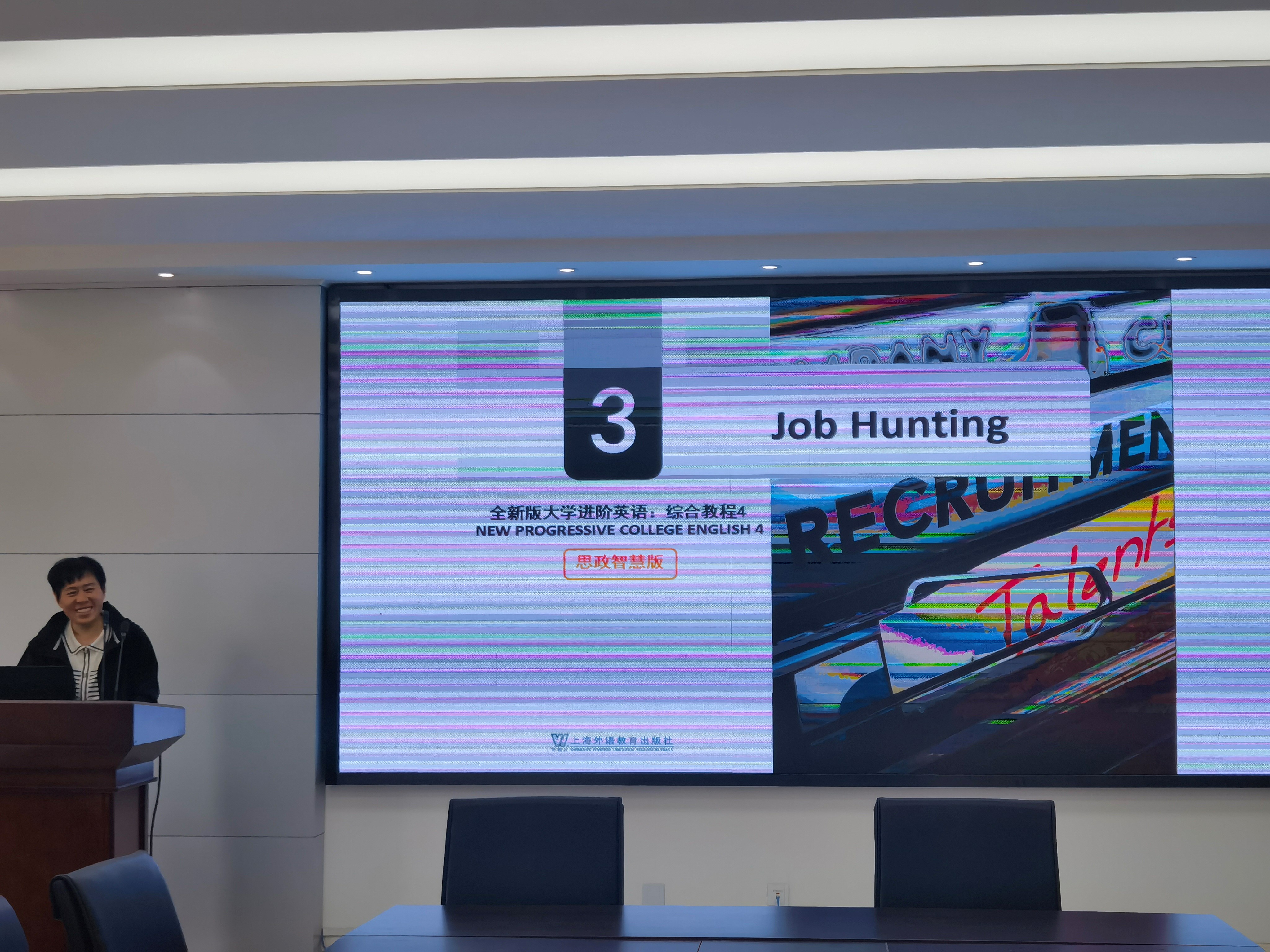 张淑霞老师对《体验英语IV》第五单元—成功之路的教学设计进行了说课。老师们就教学步骤、扩展教学资源和线上线下衔接等问题进行了研讨。