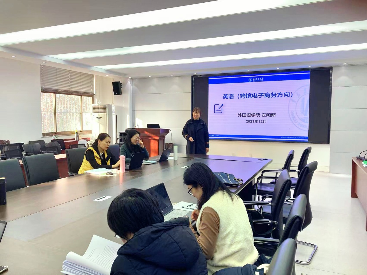 英语系副主任兼跨境电商方向专业负责人左燕茹着重介绍了英语专业(跨境电子商务方向)的培养目标、培养过程和专业特色等。本方向以校企合作为依托,在人才培养过程中注重英语语言能力的提升和跨境电商理论知识和实践技能的培养,通过强化英语语言运用能力、厚实跨境电商和国际贸易理论知识、强化跨境电商和国际贸易实践操作能力,培养“英语+跨境电商”的应用型和复合型高素质人才。打造一支理论与实践并重的高素质双师型教学团队、完善的教学管理监督机制和校企联合培养模式,是提升人才培养质量的重要保障。