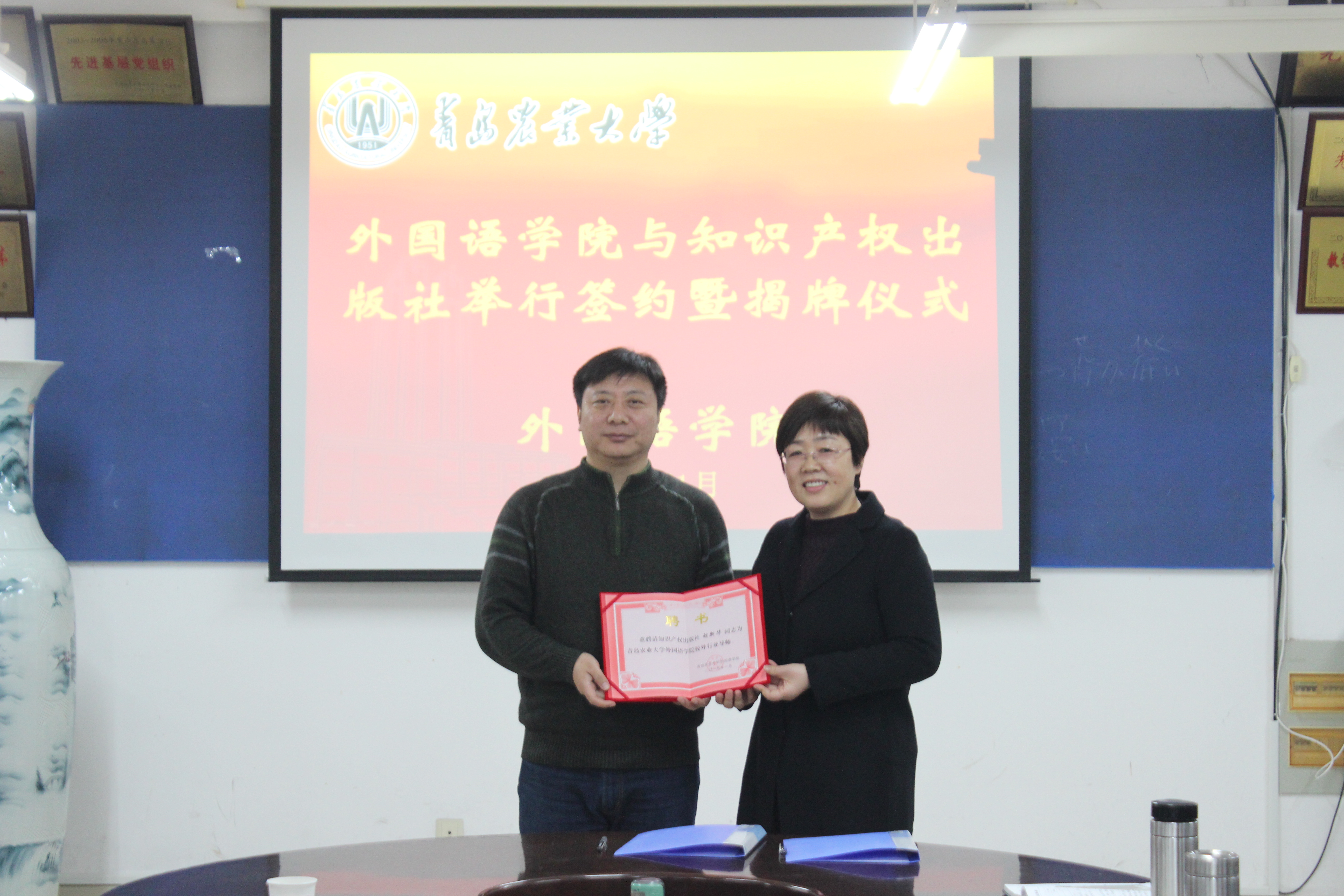 1月14日,太阳集团tyc234cc与知识产权出版社在文经楼举行校企合作签约仪式。学院副院长纪卫宁、李春梅、高秀雪,知识产权出版社胡新华主任等出席签约仪式。