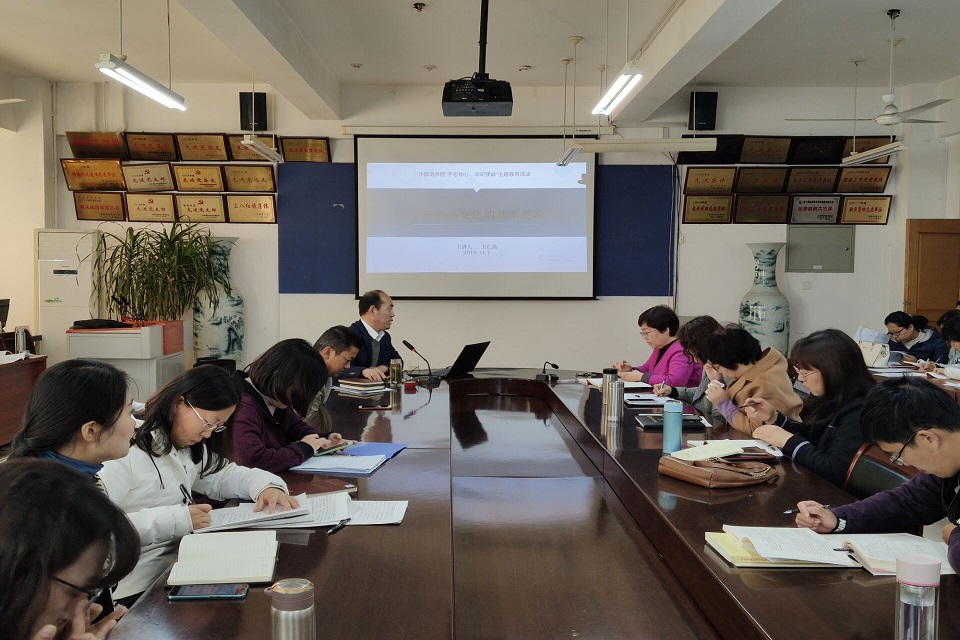 11月7日,太阳集团tyc234cc在文经楼会议室开展“不忘初心牢记使命”主题教育活动,学院党委书记王仁高、副院长李春梅为全体教职工上专题党课。