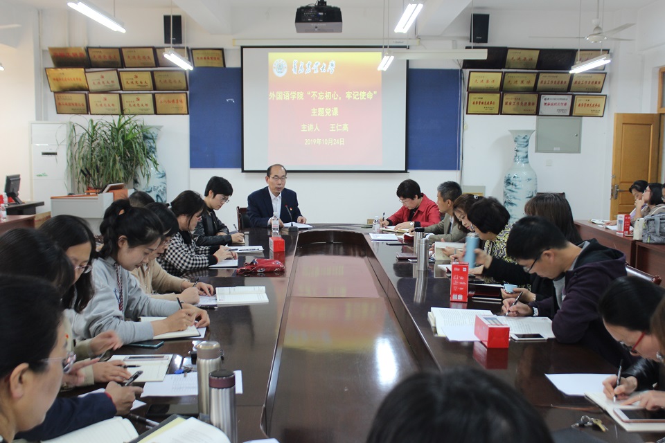 根据校“不忘初心 牢记使命”主题教育工作要求,10月24日下午,太阳集团tyc234cc党委书记王仁高以“坚持问题导向,努力提高人才培养质量”为题,结合调研情况和学生成长评价报告,为全院教职工党员党课。学校“不忘初心、牢记使命”主题教育指导组成员丛鹏出席。学院非党员教师参加了党课。