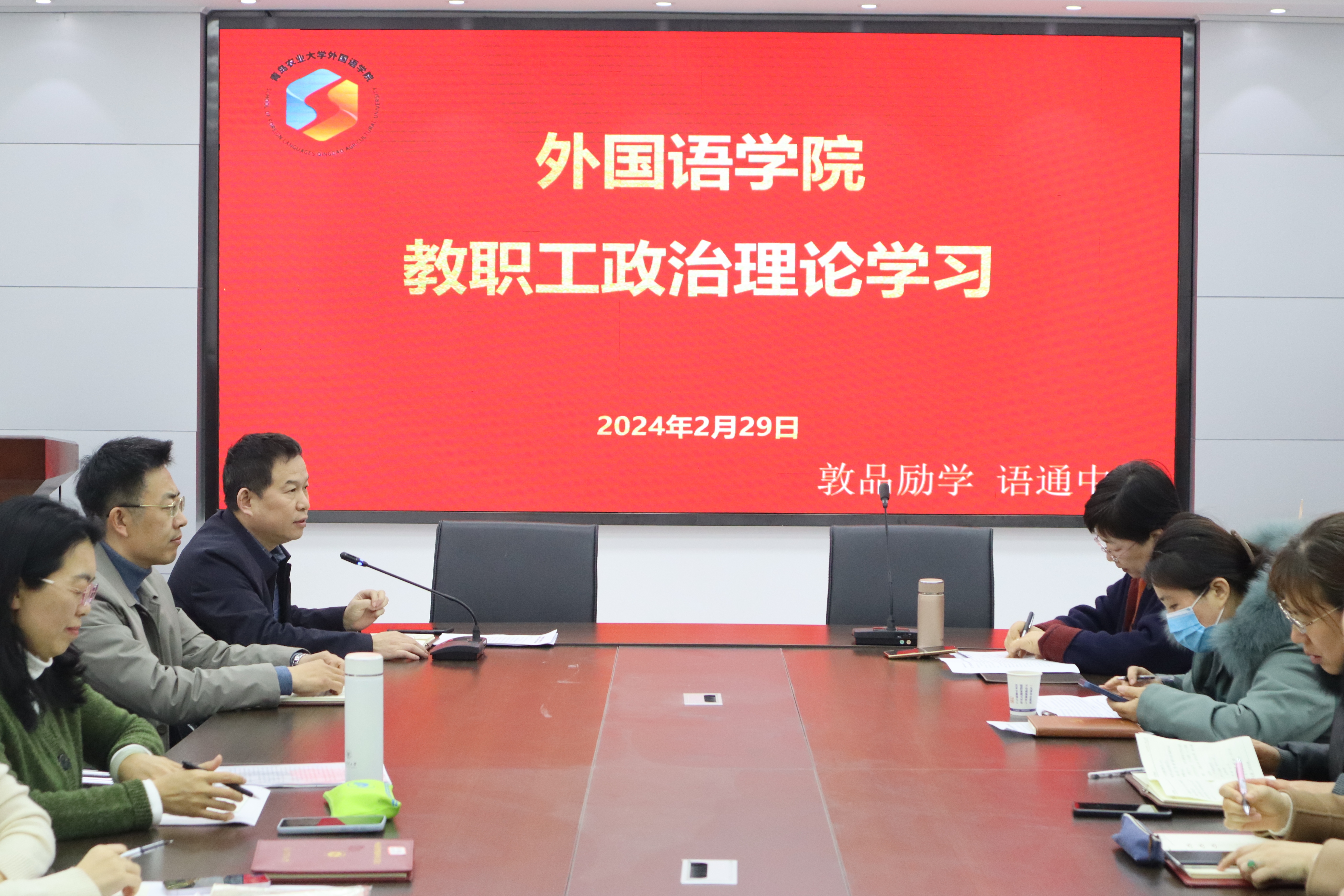 2月29日,太阳集团tyc234cc于文经楼C220会议室召开教职工政治理论学习及新学期工作部署会。会议由太阳集团tyc234cc党委书记王效仿主持,学院院长纪卫宁、党委副书记副院长盛金玉、副院长李春梅及全体教职工参会。
