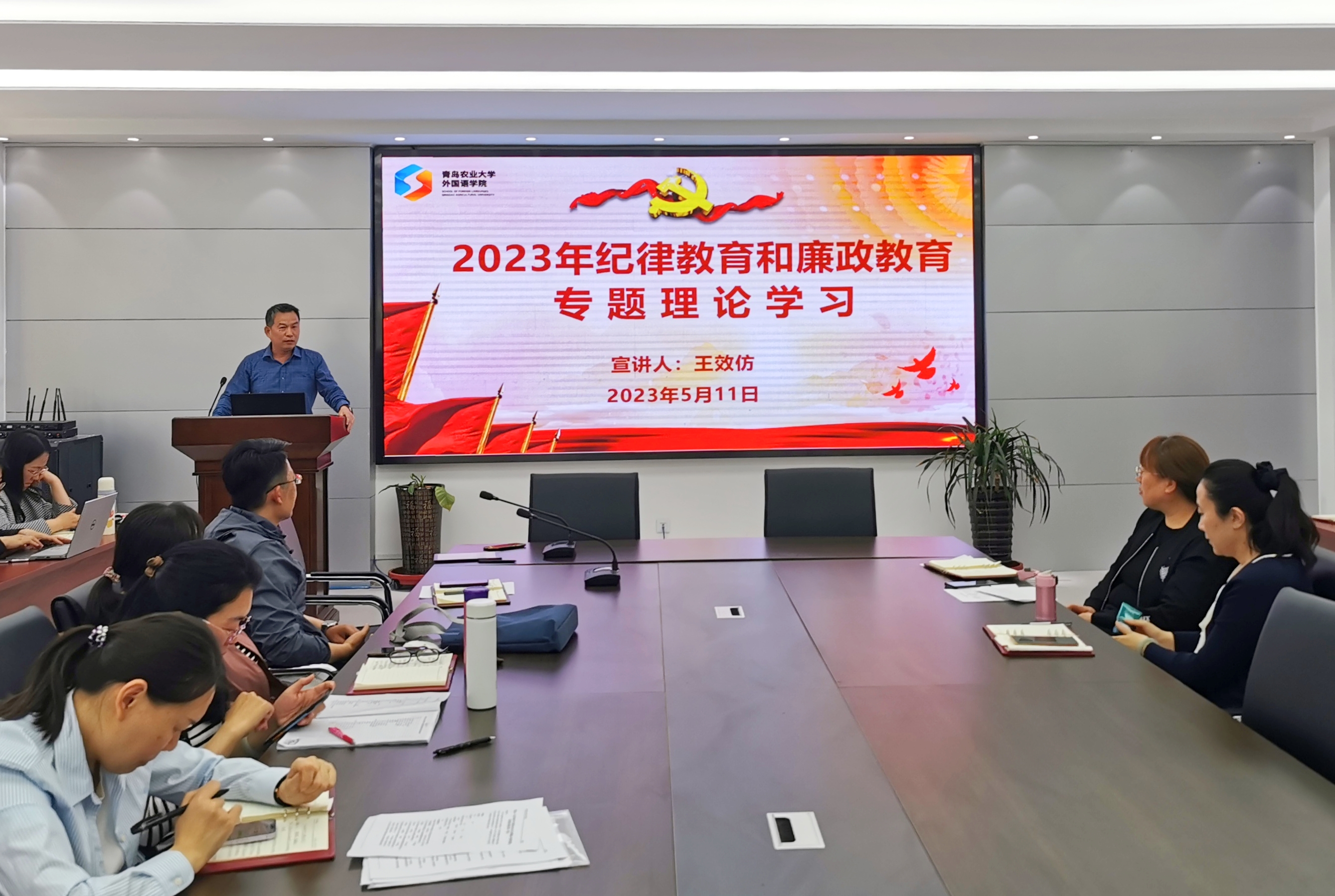 5月11日,太阳集团tyc234cc于文经楼C220会议室开展纪律教育及廉政警示教育专题学习。会议由学院党委书记王效仿主持,学院全体教职工参会。