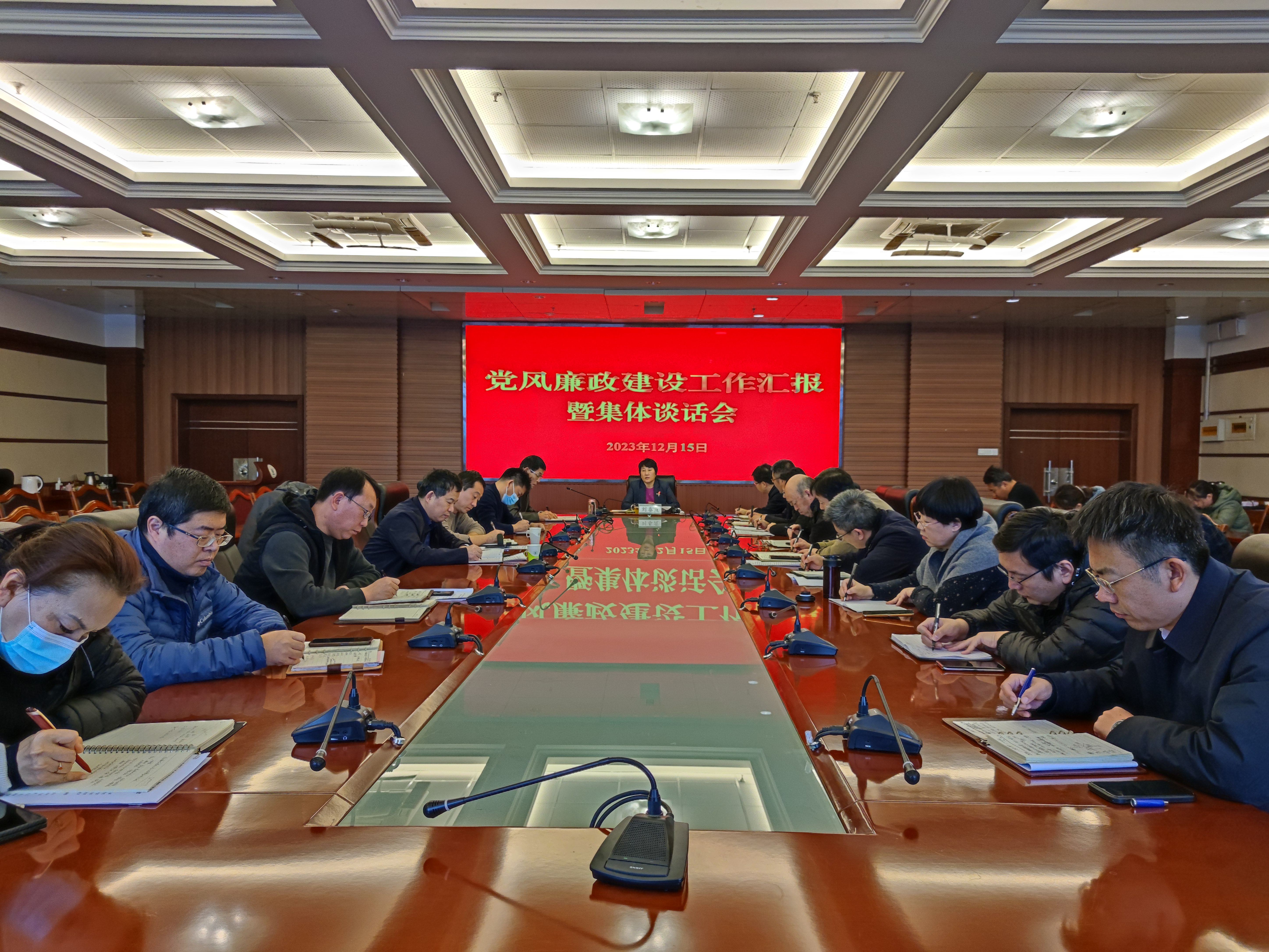 2023年12月14日上午,副校长刘春霞在行政楼三楼会议室主持召开分管部门领导班子党风廉政建设工作情况述职汇报暨集体廉政谈话,太阳集团tyc234cc领导班子成员参加了会议。