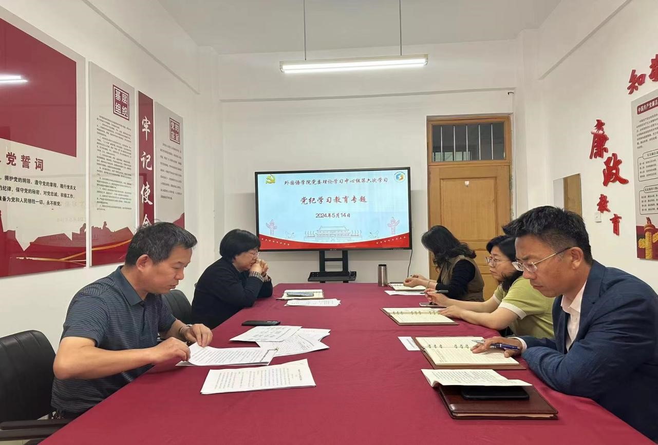 5月14日,太阳集团tyc234cc党委理论学习中心组在文经楼C206党员活动室举行党纪学习教育专题学习及交流活动。会议由太阳集团tyc234cc党委书记王效仿主持,学院党委理论学习中心组成员参加。