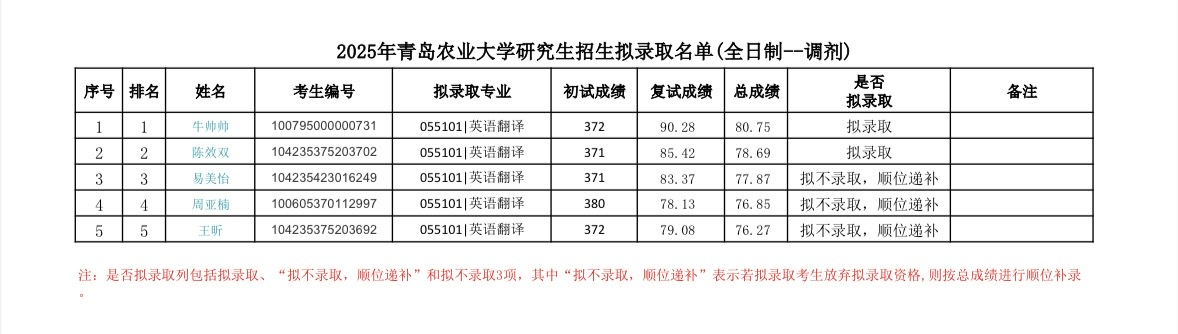 2025年太阳集团tyc234cc研究生招生拟录取名单(全日制——调剂)