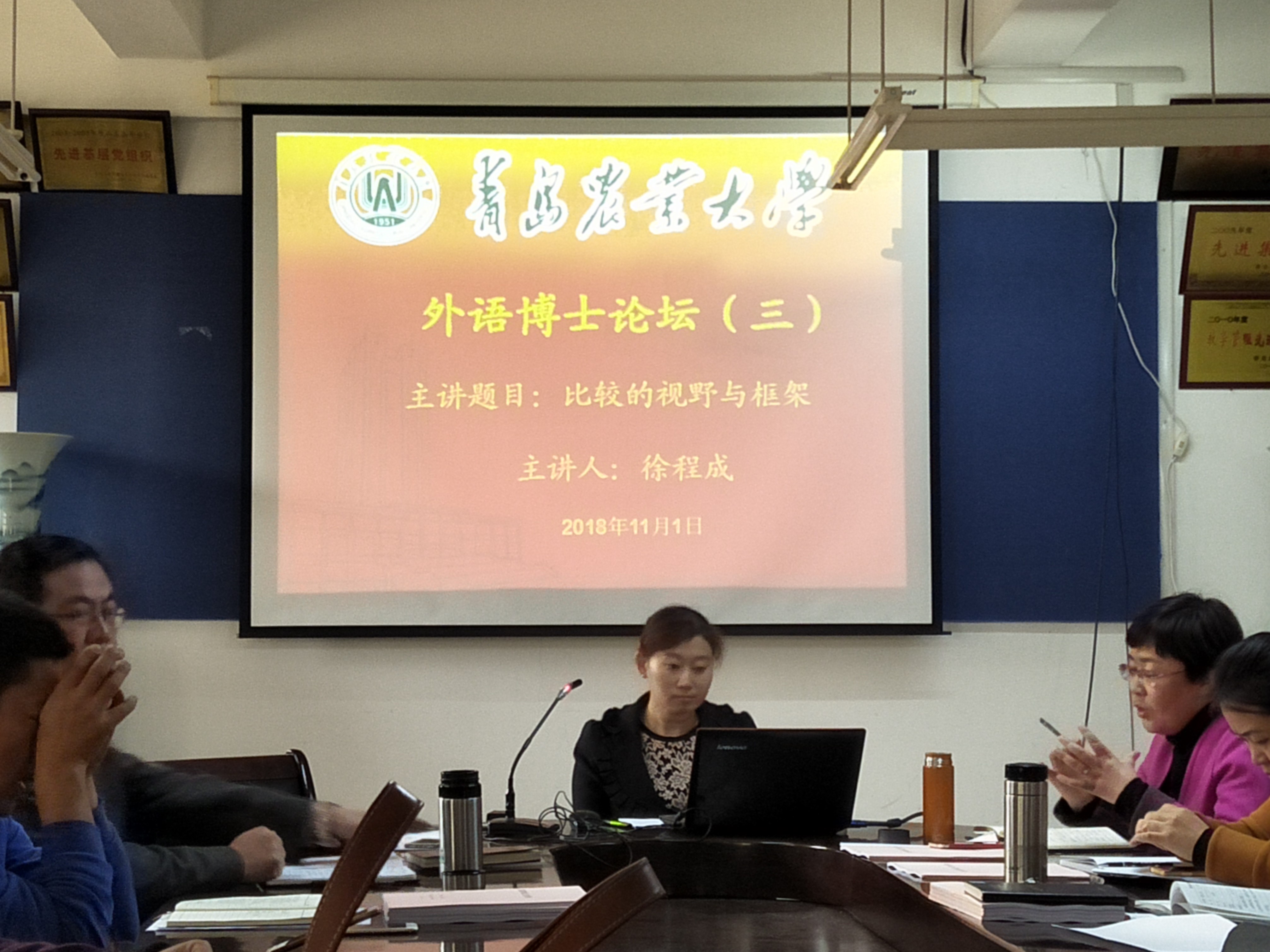 11月1日,太阳集团tyc234cc“首届外语博士论坛第三讲”于文经楼会议室顺利举行。此次博士论坛由毕业于东北师范大学的日语教研室徐程成博士主讲,学院全体教职工参加,学院领导纪卫宁主持论坛。