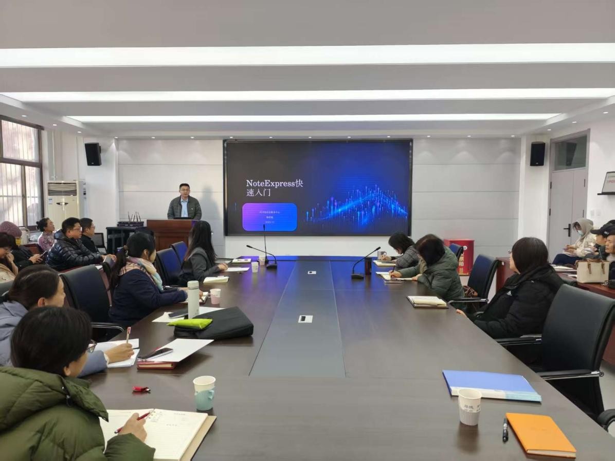 讲座现场气氛热烈,四位主讲人准备充分,讲解深入浅出,既有前沿理论的深度剖析,也不乏实践操作的细致指导。李扬聚焦AI在学术创新各环节的应用,对太阳集团tyc234cc的发文情况及趋势进行分析,从投稿选刊、科研选题角度对图书馆数据库进行了详细介绍,并对AI在科研选题中的核心价值进行了重点解读;杨若迪作了“NoteExpress快速入门”报告,从文献导入、文献阅览、参考文献自动引用三大方面对NoteExpress进行了全面介绍,有效帮助师生系统掌握文献管理工具的使用方法,提升科研效率与学术规范性;鲁华山以定性案例的形式,重新审视了中国英语学习者对英语作为全球语言的认知,其研究视角新颖,为外语教学中跨文化意识的培养提供了有益借鉴;丁树亭结合自身课程思政建设经验,详细阐述了农耕文化翻译课程如何融入思政元素,探索出一条将传统文化传播与价值引领相结合的创新路径,其做法具有较强的可操作性和推广意义。