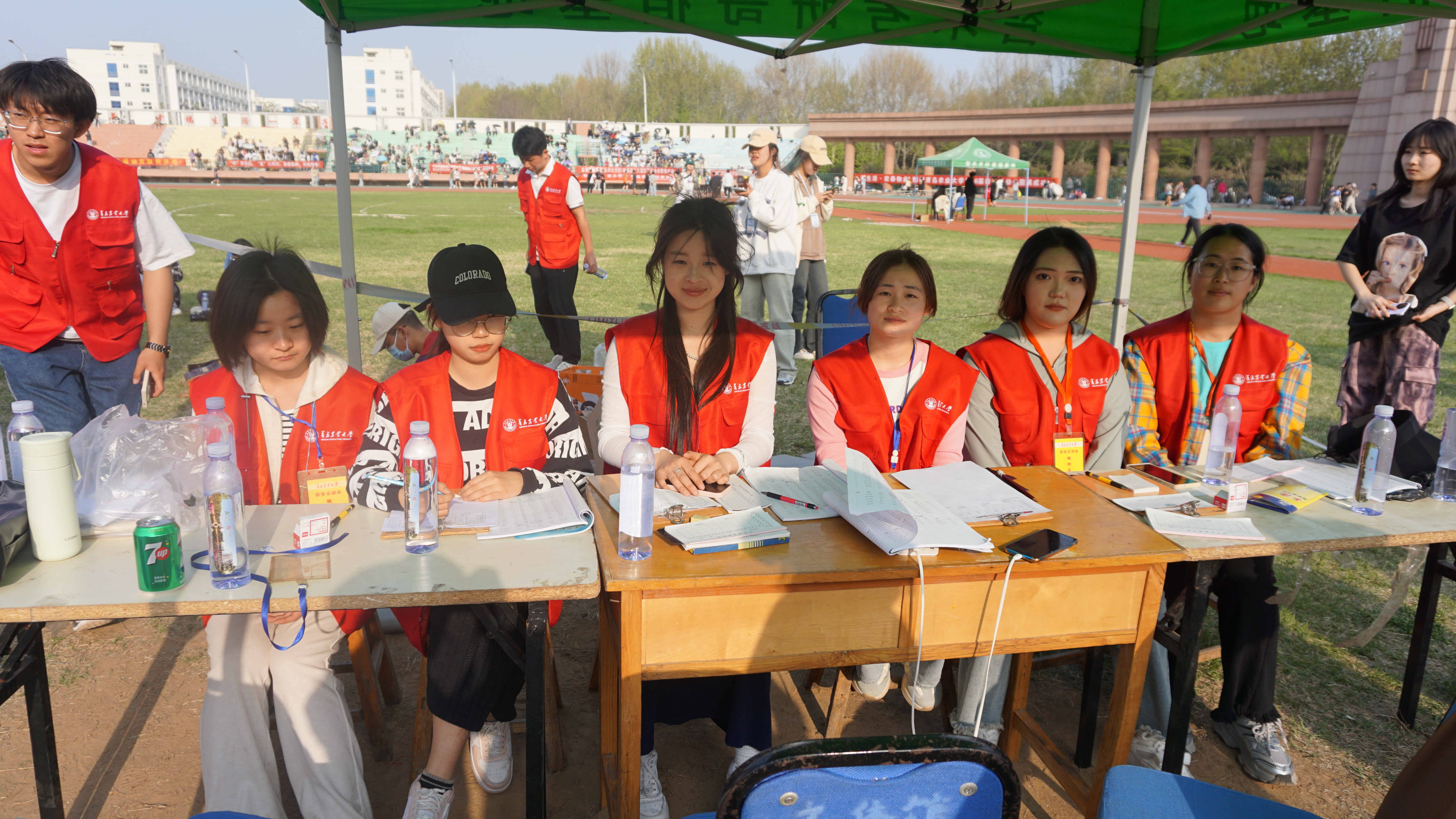 赛场外,学院啦啦队为运动员加油打气,宣传组努力捕捉运动健儿的拼搏瞬间,后勤保障组细心安排周到服务,正是由于每一位志愿者的辛勤付出才保证了运动会的有序进行。