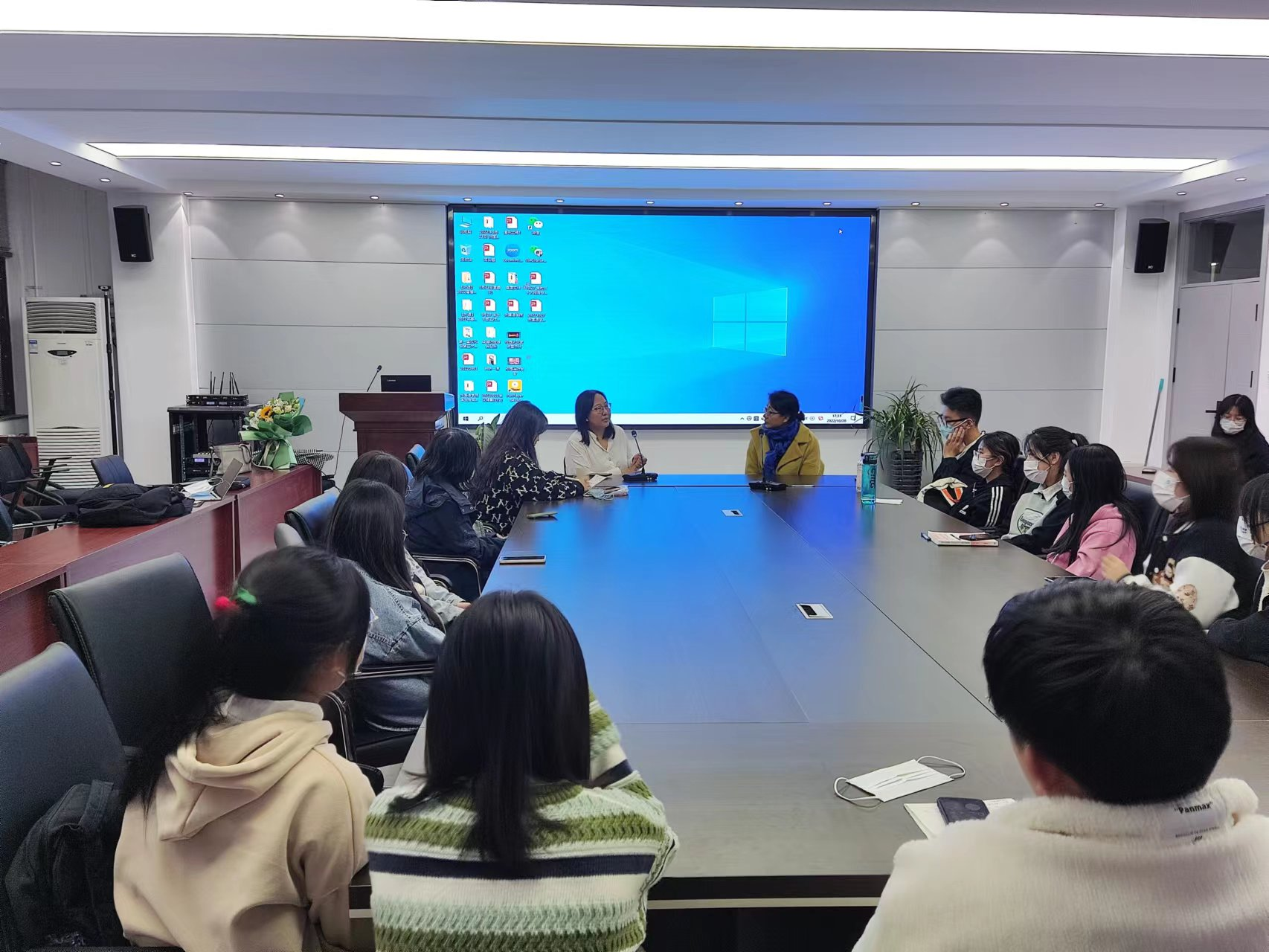 在互动环节中,吴老师耐心详细地解答同学们关于留学费用、出国择校、文化交流与文化传播等问题。班主任董博宇老师强调新时代外语人才的培养、国际传播能力的提升是重中之重,鼓励同学们积极参与学校组织的各项留学项目和活动,不仅要在国际交流中提升自己的专业素养,更为重要的是要努力讲好中国故事,传播好中国声音。