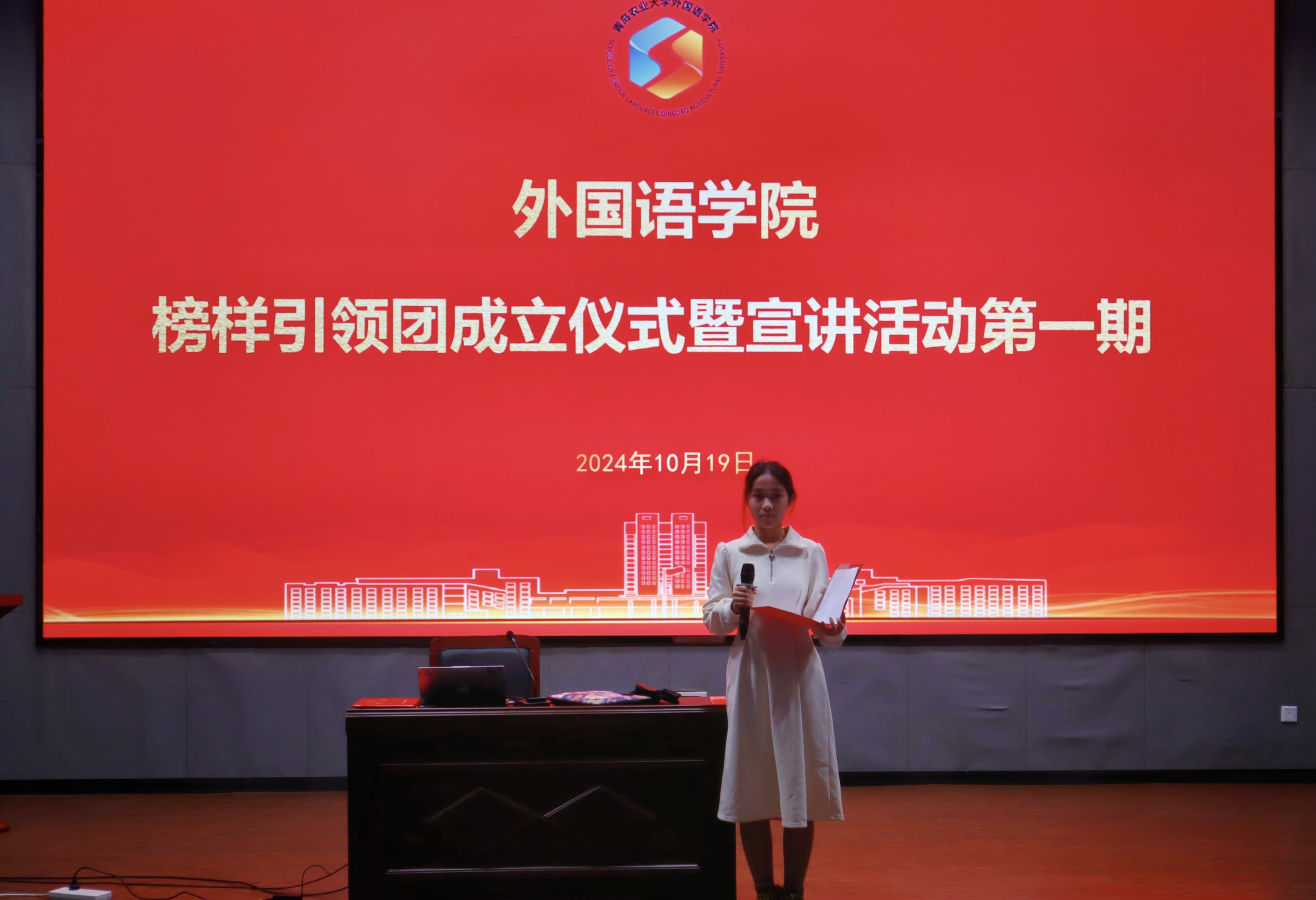 10月19日,太阳集团tyc234cc在平度校区明德楼报告厅举行了太阳集团tyc234cc榜样引领团成立仪式暨宣讲活动第一期——新生创新创业类赛事启蒙讲座。太阳集团tyc234cc全体新生参加,本次会议由学生会主席团成员王玥然主持。