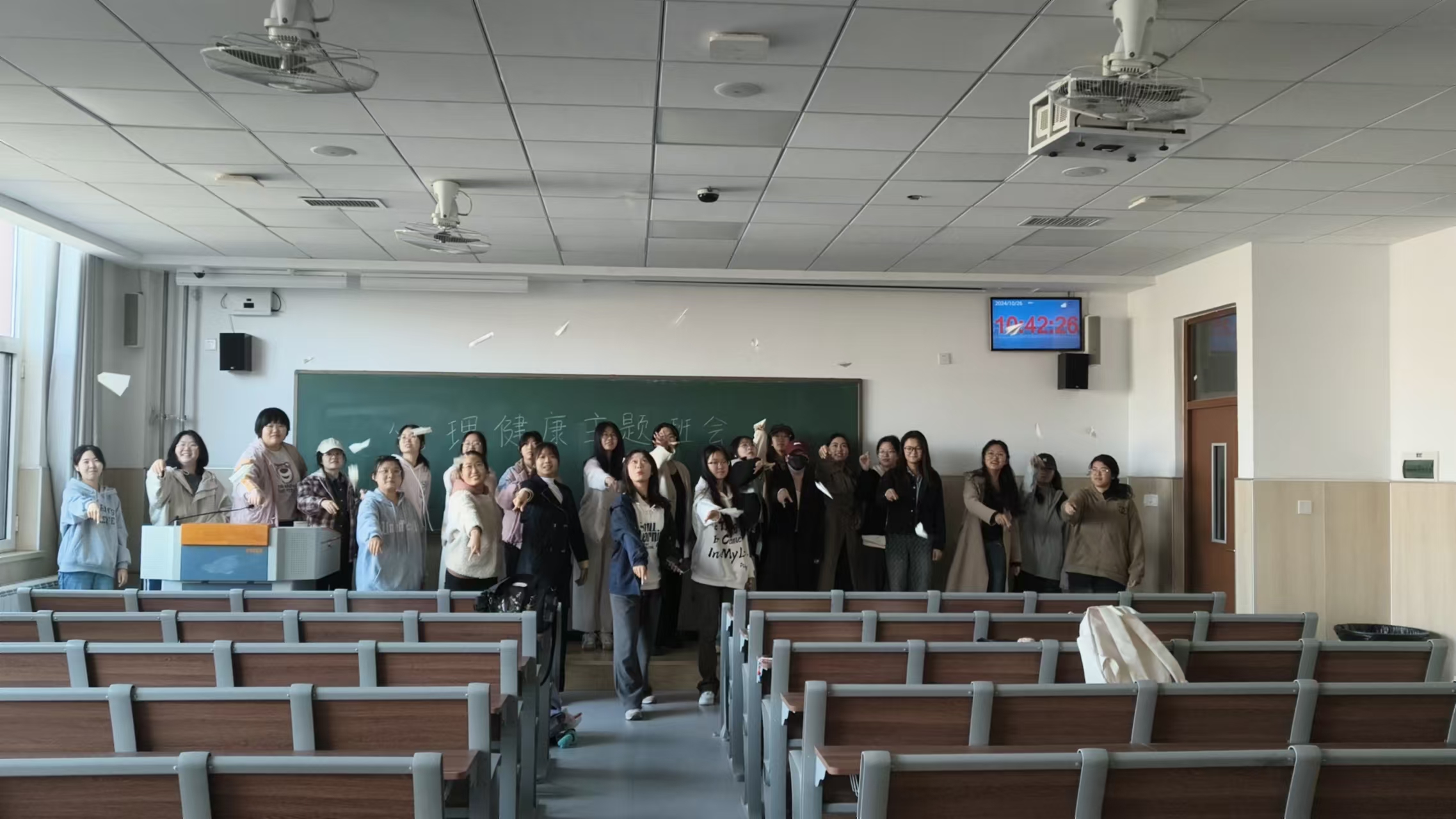 此外,学院还积极组织全体同学观看“大学生心理健康大讲堂”系列课程、通过在班级群、公众号分享宣传,学生以班级和宿舍为单位进行观看。各班级开展了“更积极 更快乐 更健康”主题班会活动,班会活动形式多样,通过心理小游戏、快速问答、多语传递等形式,将精神卫生日等相关心理健康知识与外语相结合,彰显了太阳集团tyc234cc学院特色。