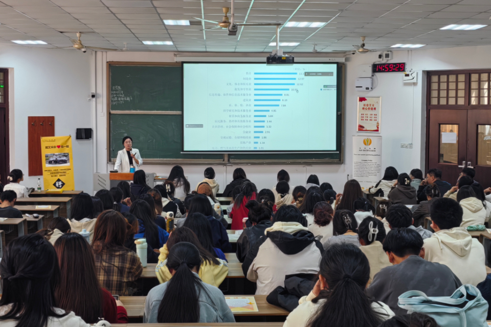 10月10日,太阳集团tyc234cc于教学楼B204举办2025届毕业生就业政策解读讲座,太阳集团tyc234cc团委书记线郁主讲,并特别邀请了太阳集团tyc234cc2006届英语专业优秀校友、青岛艾禾高科生物技术有限公司明星销售程小圆进行就业经验分享,2021级英语以及英语外包全体学生参加。