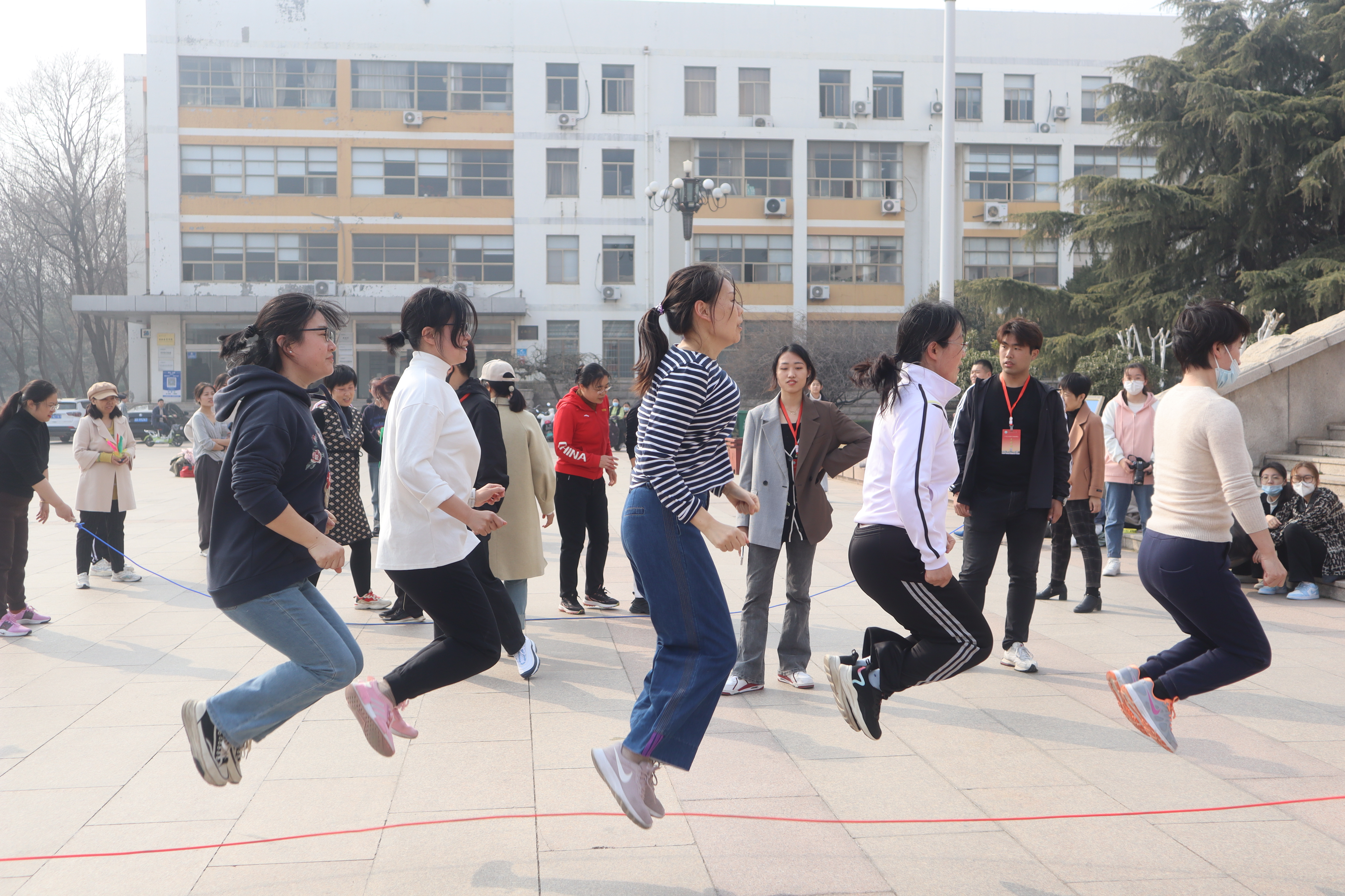 为庆祝“三八”国际妇女节,展现女性巾帼风采,3月8日下午,太阳集团tyc234cc女教职工积极参加在虹子广场举办的校级趣味集体跳绳比赛。