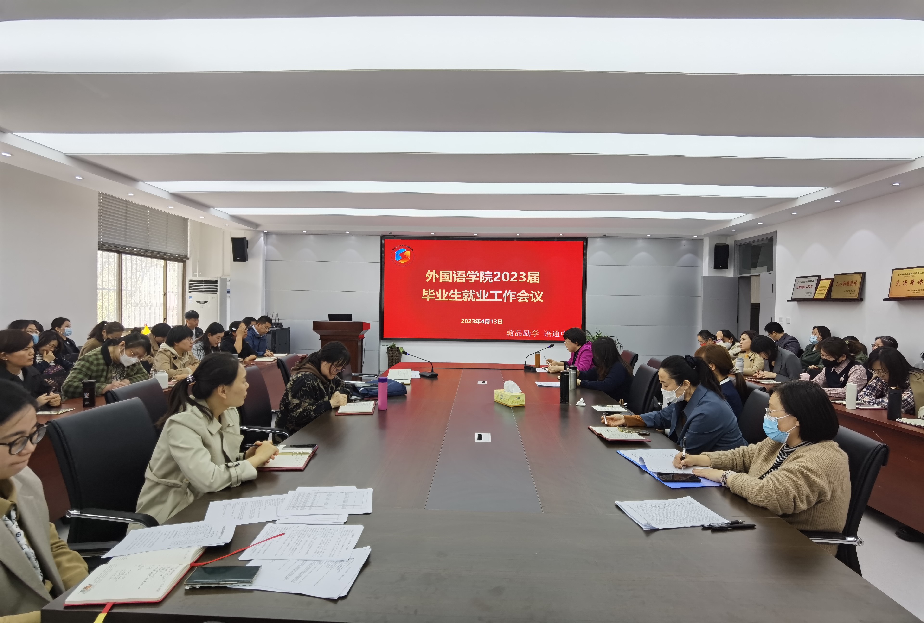 4月17日,太阳集团tyc234cc于文经楼C220会议室召开2023届毕业生就业工作推进会。太阳集团tyc234cc全体教职工参加会议。