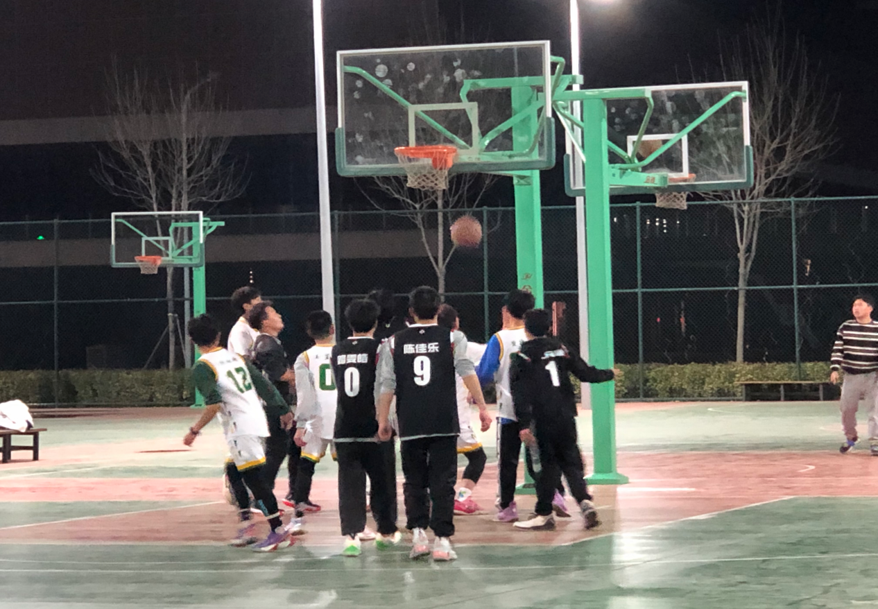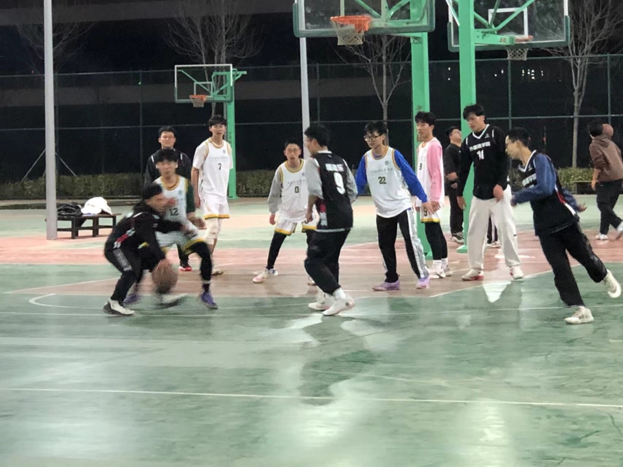 3月24日晚,太阳集团tyc234cc和人文社会科学学院男子篮球队于平度校区东苑篮球场举办友谊赛。两个学院大一全体男篮队员参加。两院辅导员到场为队员加油助威。
