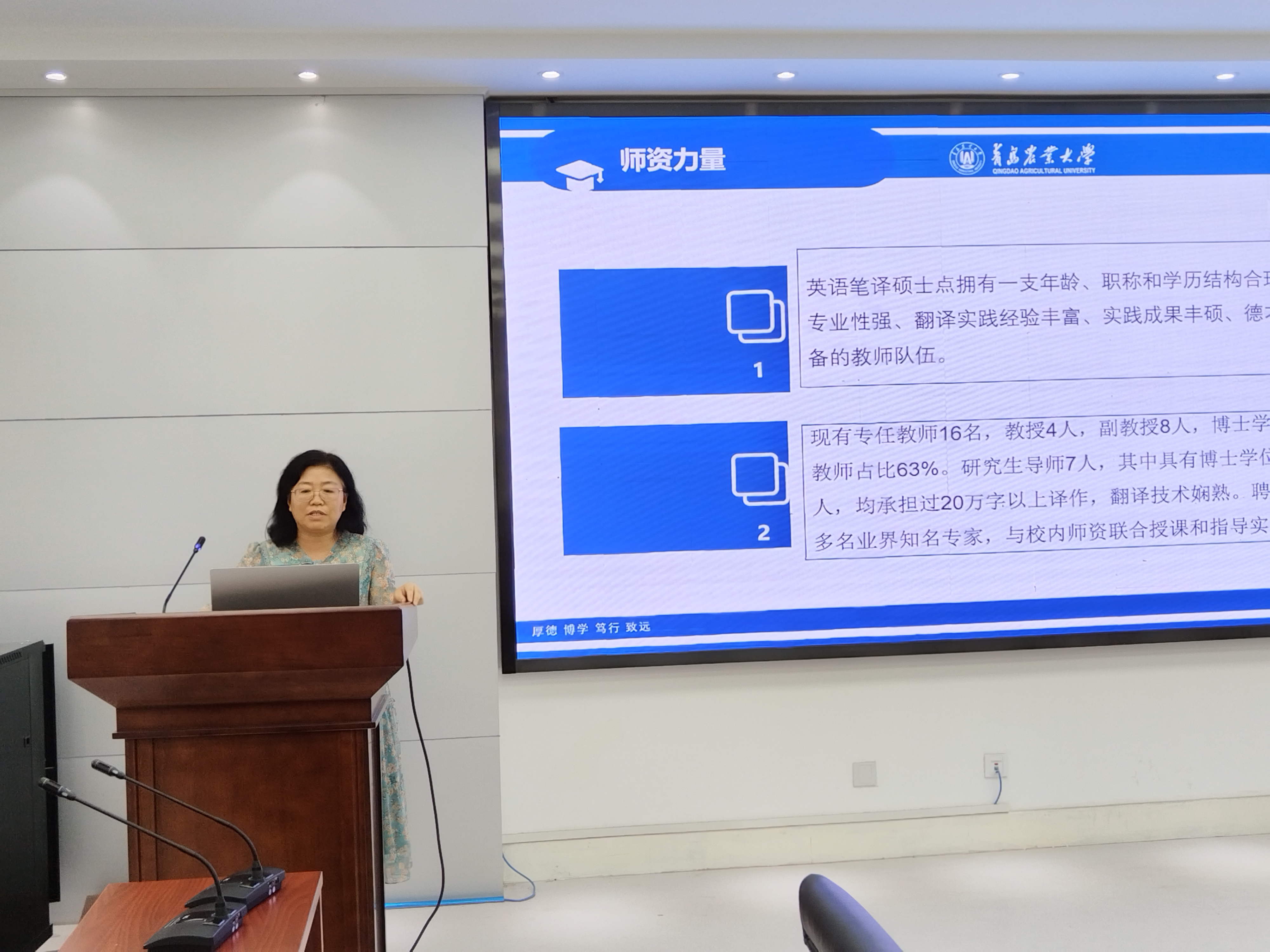 高秀雪就研究生培养方案和培养要求,以《明确培养目标,提高专业能力,为国际传播打好基础》为题,从学院、翻译学位点、研究生培养方案三个方面进行具体介绍。她还提出对研究生的三点期望:一是要胸怀家国,勇于担当;二是要珍惜学习机会,增强专业本领;三是要学会与人沟通与合作。