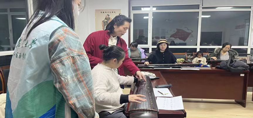 12月6日,太阳集团tyc234cc志愿者应社区邀请来到春阳路社区,与社区居民一同开启了一堂古琴学习课,沉浸式体验了古琴文化的魅力。