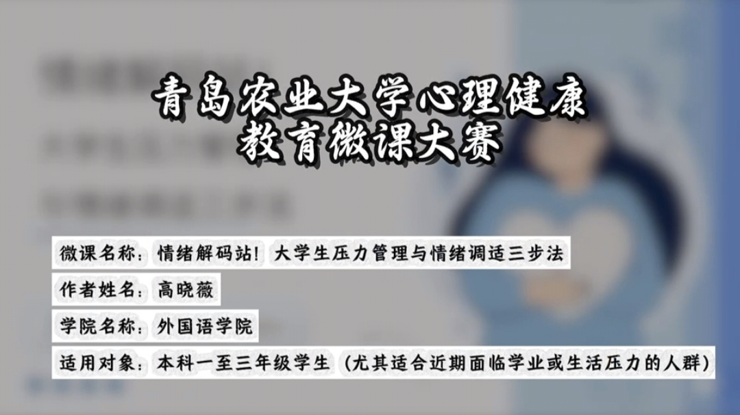 在“心向暖阳,青春飞扬”心理健康教育主题班会大赛中,《凝心聚力,共筑团队之光》《团游筑新桥,减压向未来》两个作品进入决赛,并获得校级二等奖;在“赋能青春 健康成长”心理健康教育微课大赛中,《情绪解码站!大学生压力管理与情绪调适三步法》凭借清晰的逻辑、生动的表达和实用的内容脱颖而出,最终荣获校级二等奖。