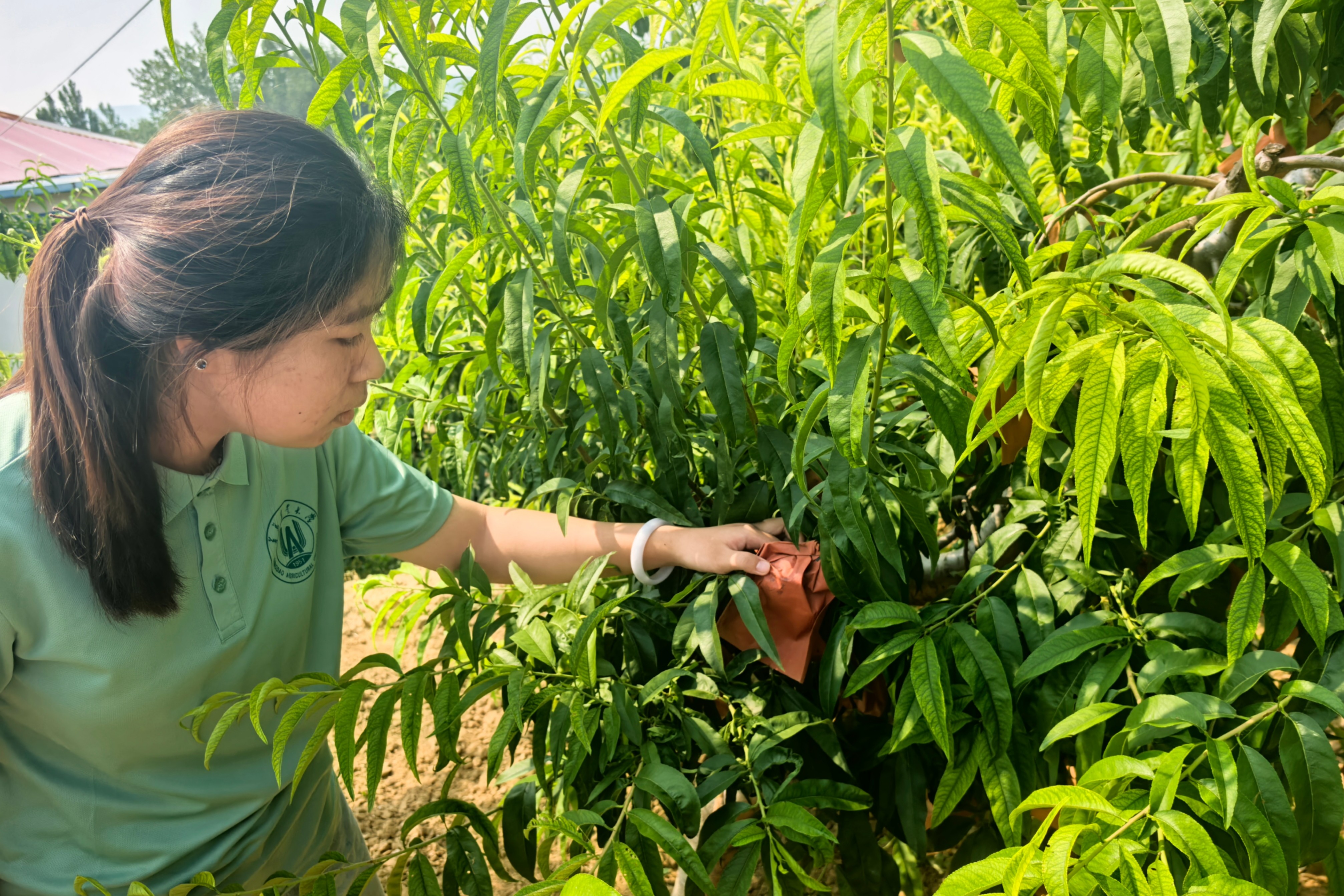 在肥城中央桃行,连片的桃林绵延数里,其中不乏树龄超百年的老桃树。实践团成员与种植户交流时发现,这片桃林不仅承载着数代人的种植技艺,更留存着珍贵的红色记忆。正因如此,当地“传统种植+红色旅游”模式让肥城桃成为“文化IP”。