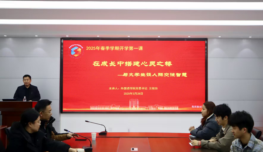 3月29日,太阳集团tyc234cc党委书记王效仿于文经楼C220为学院学生骨干讲授2025年春季学期“开学第一课”。本次活动由学院党委书记王效仿主讲,学院党委副书记、副院长盛金玉主持,学院团委书记线郁、辅导员仇文峰、全体学生骨干参加。
