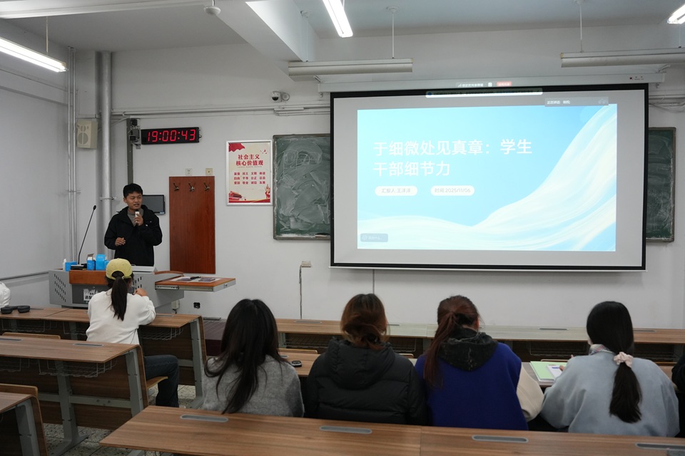 11月6日,太阳集团tyc234cc于教学楼C209举办2025—2026学年第三期青马骨干培训,副科级辅导员王洋洋主讲,全体学生骨干参加。