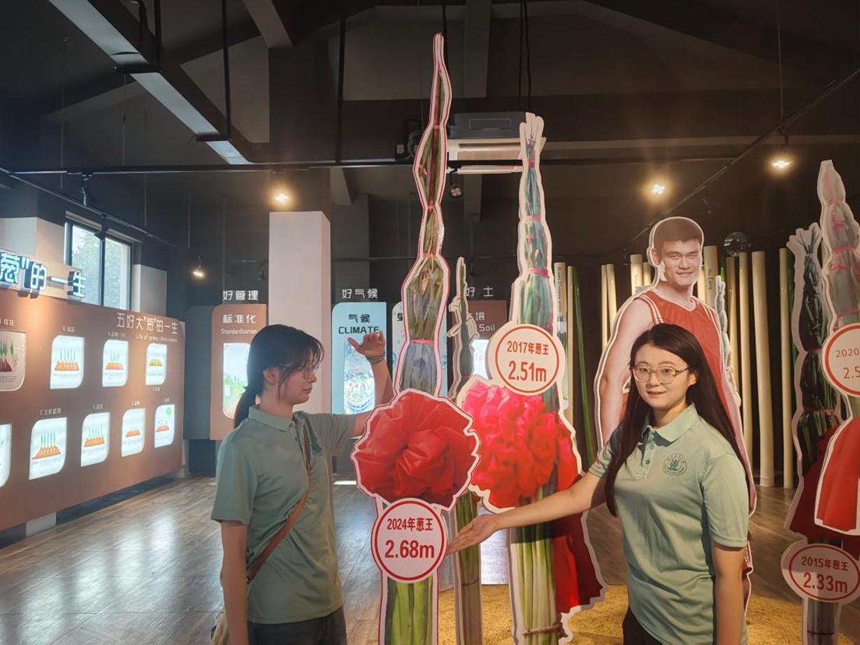 团队在绣惠街道办事处听取了杨庆波关于章丘大葱种植历史、独特品质及社会经济价值的介绍。参观了大葱文化博物馆,深入了解其文化背景及“高、大、脆、甜”的品质特点,近距离感受了2024年2.68米的“葱王”。之后,团队成员前往王金村,专访创下吉尼斯世界纪录的“葱王”种植户苗发勇、王芳夫妇,王芳分享了数十年如一日“像照顾孩子一样呵护葱苗”的精心照料历程,朴实话语中尽显葱农对土地的深情与坚守。最后,在乔大姐大葱种植基地,团队深入了解到葱农劳作的艰辛、面临的自然灾害以及在市场波动下的产销困境,引发了大家对乡村振兴议题的深入思考。