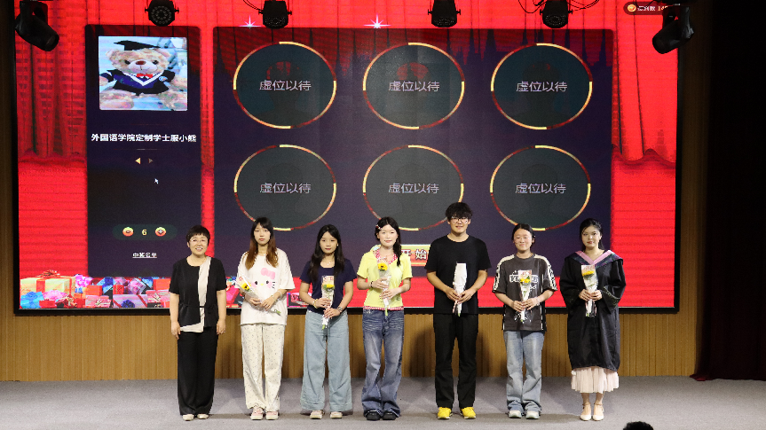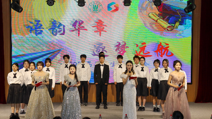 第三篇章“未来征途·心向远方”将晚会推向高潮。韩语歌曲《逐光而行》唱出了毕业生们勇敢追梦的决心;学院辅导员带来的惊喜节目《爱你》更是让现场掌声不断;2021级毕业班班主任老师及毕业生带来了歌曲《凤凰花开的路口》,班主任们对毕业生送上了诚挚祝福;“虹子初心”合唱《世界赠予我的》,用歌声表达了对母校、师长和同窗的感恩之情。