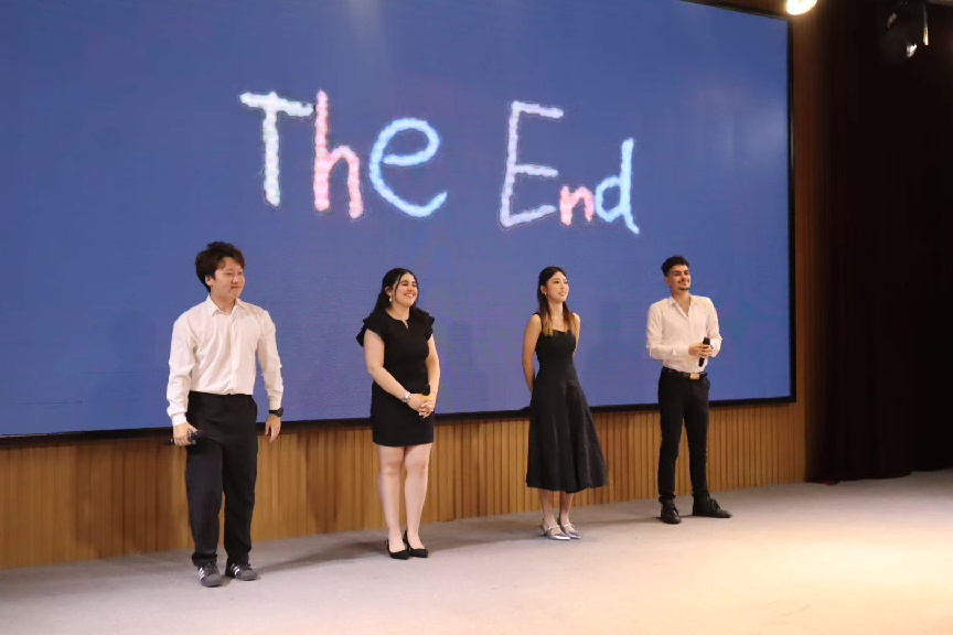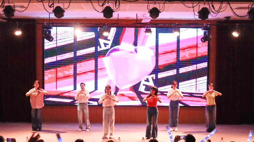 在热情洋溢的开场乐队表演《鲜花》之后,第一篇章“青春汇聚·岁月凝光”正式拉开帷幕。中文歌曲《飞云之下》用悠扬的旋律唱出了毕业生们对未来的美好憧憬;活力四射的Kpop舞蹈《燃烧吧!青春》展现了外院学子的青春风采;民乐弹唱《破茧成蝶》则将传统民乐与现代音乐完美融合,寓意毕业生们即将破茧成蝶、展翅高飞。