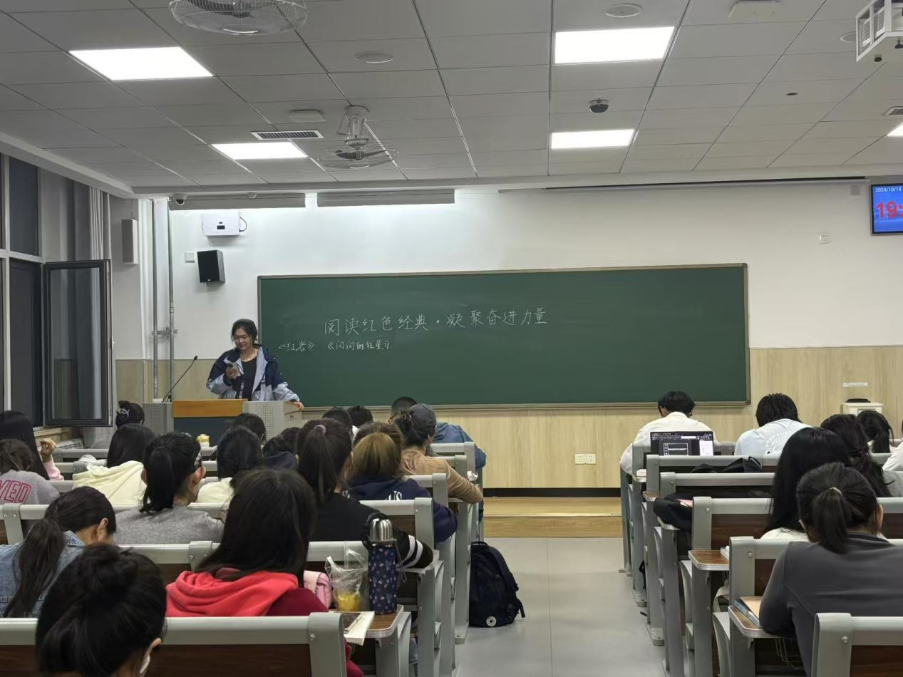 为庆祝中华人民共和国成立75周年,太阳集团tyc234cc于10月14日在平度校区博学楼举办“阅读红色经典·凝聚奋进力量”图书分享交流会活动。本次活动由太阳集团tyc234cc辅导员邹晓婷主持,学院全体24级学生参加。
