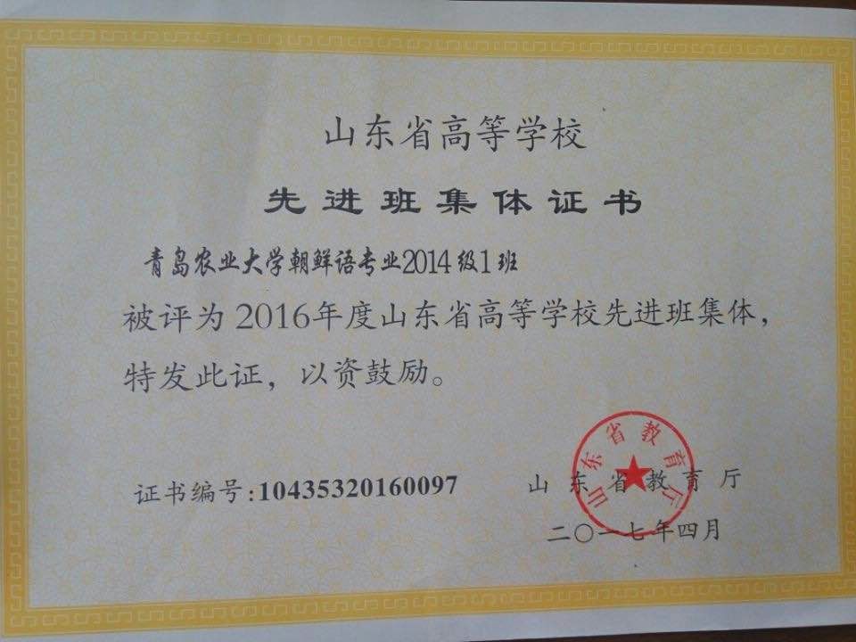 这儿是朝鲜语2014级1班,2016年度山东省高等学校先进班集体。在一个集才华与活力于一身的优秀班集体。